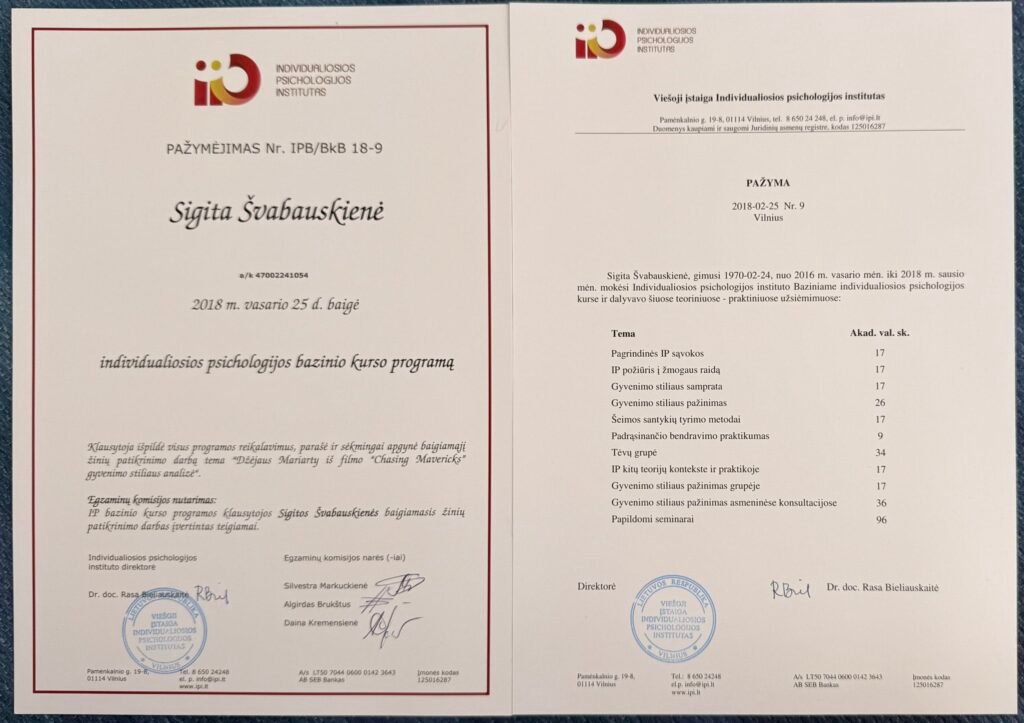 Visas veiklas vykdau pagal individualios veiklos pažymas.